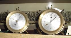 Description: Schatz Brass Ship’s Bell 8-Day 7J Clock with matching barometer.