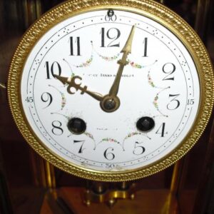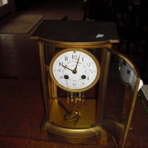 Description: With two weights and brass arch top movement.