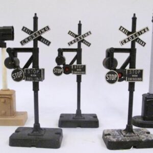 Description: Miscellaneous Lionel lights and signals. Comes with 1 box. List includes: 8 green lights; 1 green streetlight; 1 yellow plastic DoT; 1 metal red signal light ~12″; 1 white base plastic RRX signal; 1 brown RRX signal; 2 black RRX signals.