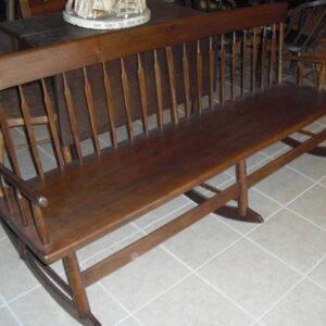 Item Number: 443Description: Rocking bench with beautiful, simple hand-carved spindles. Similar to a Mammy’s bench 1800-1850.
