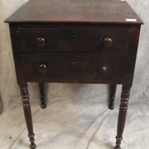 Description: Country Two Drawer Stand. With turned legs.