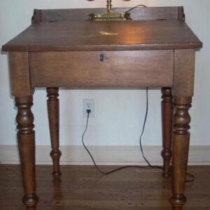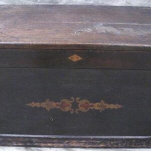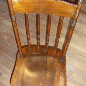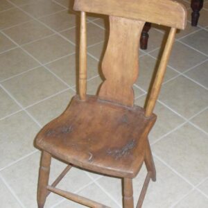 Description: Dark primitive kitchen chair. Some loss of paint.