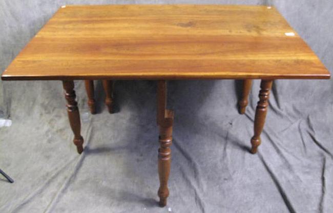 Description: American cherry dropleaf swingleg table. Refinished.