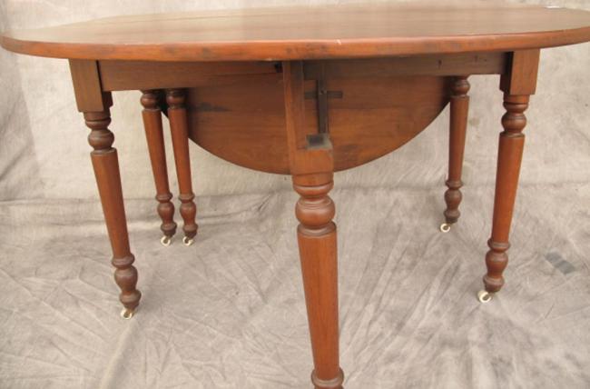 Description: American Walnut Swing Dropleaf Dining Table with white porcelain casters. 19th century.