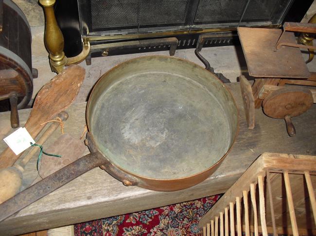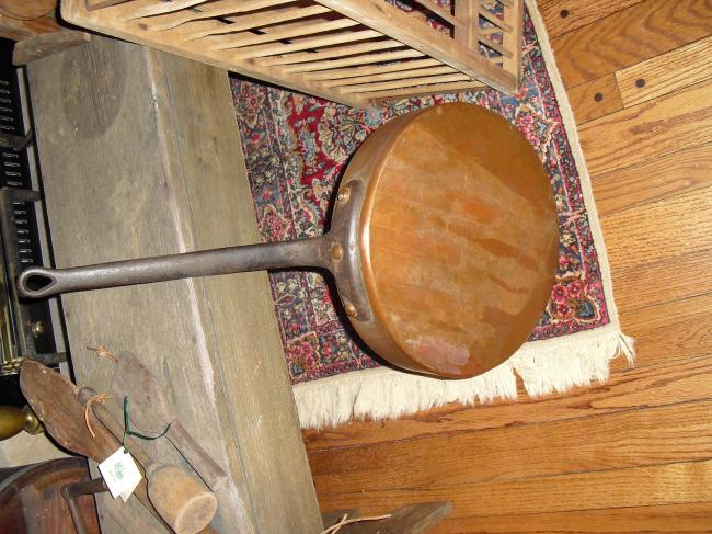 Description: Extra large copper bottom frying pan, beautiful condition.