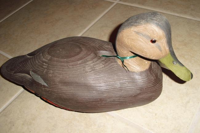 Wood carved decoy. Including a Brant in preening – position, Lon in winter plumage and red legs, signed.