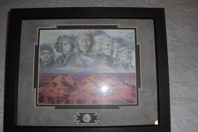 Description: Print of Indian Faces w/Indian Head Nickle by