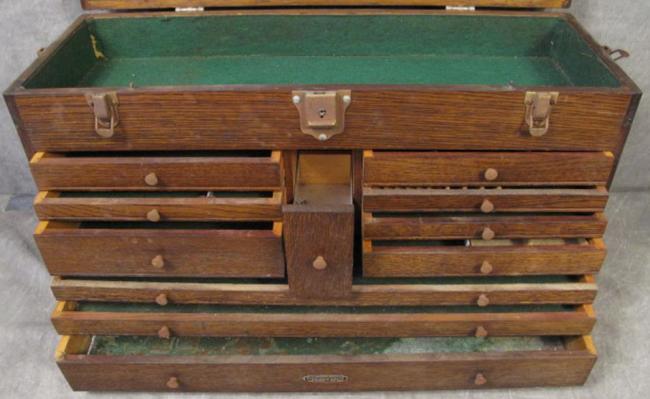 Machinist’s Wooden Toolbox with Tools