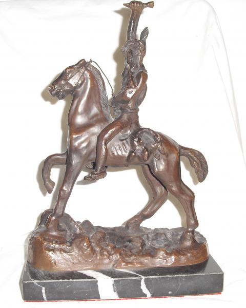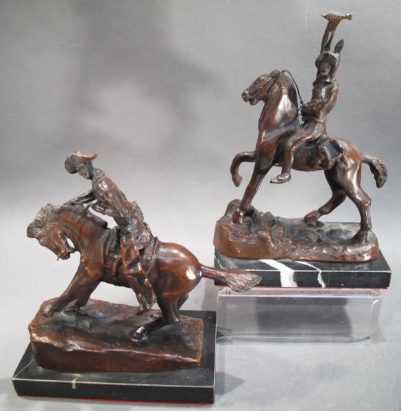 Description: Two Remington Recast Bronze, “Rough Rider” and “Indian on Horseback”
