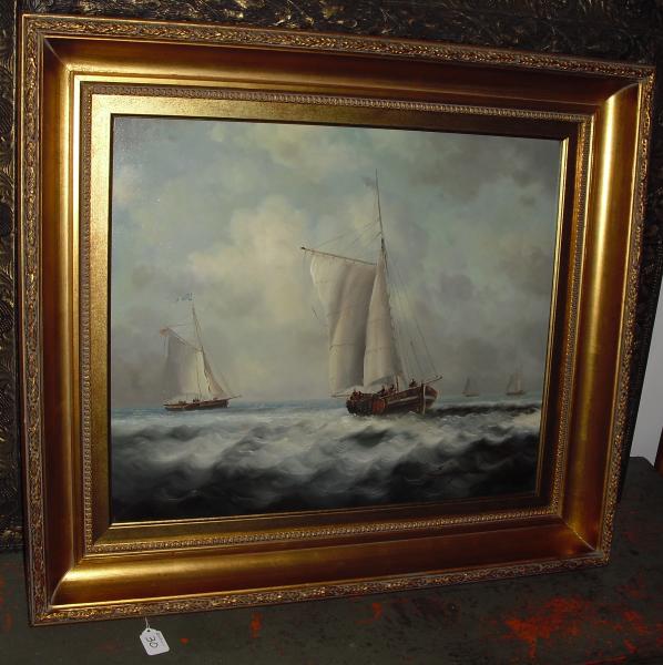 Sailboats on Choppy Seas Signed E. Ponthier