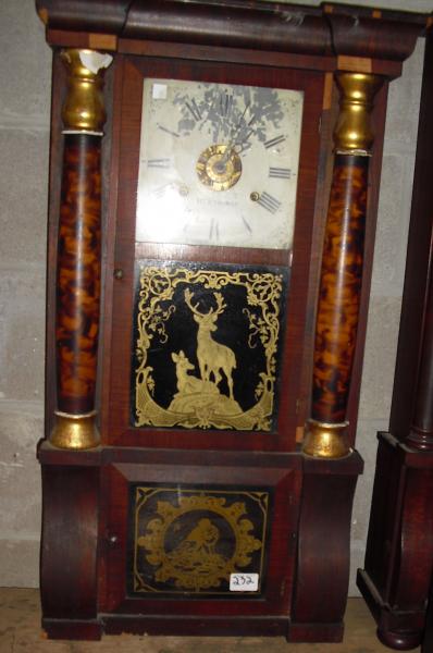 Description: Mahogany with marbleized columns, reverse – on glass panels and alarm feature.