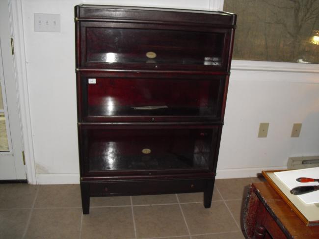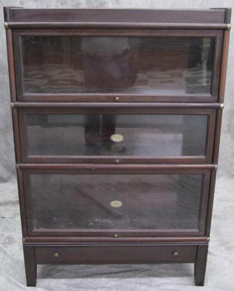 Description: Globe Wernicke Mahogany Three Section Barrister Bookcase. With glass front.