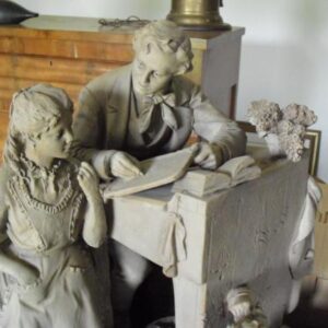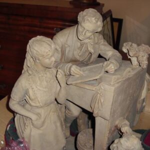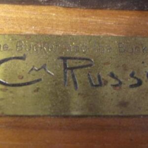 Description: The Bucker and the Buckeroo on wooden base. After C.M. Russell Sculpture.