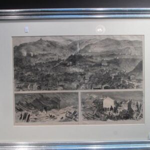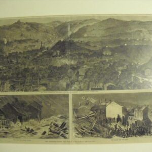 Description: The Pittsburgh Flood from Sketches by Theo. R. Davis 1) The Upper Portion of Alleghany City, Showing Butcher’s Run and Spring Garden Run. 2) The Flood in O’Hara Street. 3) The Search for the Dead. Harpers Weekly (matching P211).