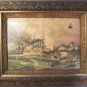and sinking of the Merrimac at Santiago, Cuba. 1898. In period frame.